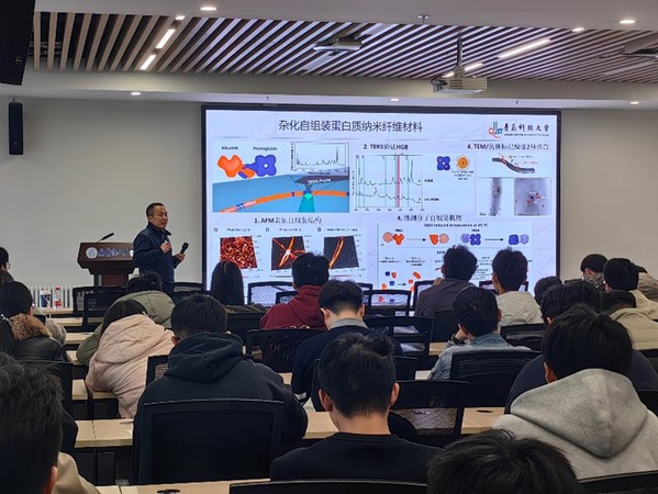 报告中,魏刚教授系统介绍了蛋白质、多肽、纤维素及壳聚糖等生物大分子纳米材料的设计策略、制备方法、仿生合成及其在生物医学与组织工程中的应用进展。他强调,通过精准调控生物大分子的功能结构单元,可赋予其优异的生物诱导与仿生合成能力,进而构建出多功能纳米杂化材料,推动生物医学领域的创新发展。魏刚教授指出,生物大分子与纳米科技的深度融合是当前材料科学与医学交叉研究的重要方向,未来应进一步加强多学科协同,拓展材料在疾病诊断、治疗与再生医学等方面的应用潜力。