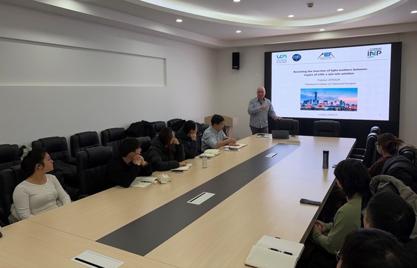 在指导环节之后,两位教授分别带来了精彩的前沿学术报告,分享了各自课题组在功能材料和催化领域的最新进展。Fabrice Leroux教授的报告Revisiting the insertion of light-emitters between Layers of LDH: a win-win solution围绕层状双金属氢氧化物(LDH)这一经典插层材料体系展开,深入探讨了将发光体(light-emitters)高效、稳定地插入LDH层间的创新策略,展示了这种“双赢”解决方案如何实现材料结构调控与功能集成的完美结合,为开发新型光功能复合材料提供了新思路。